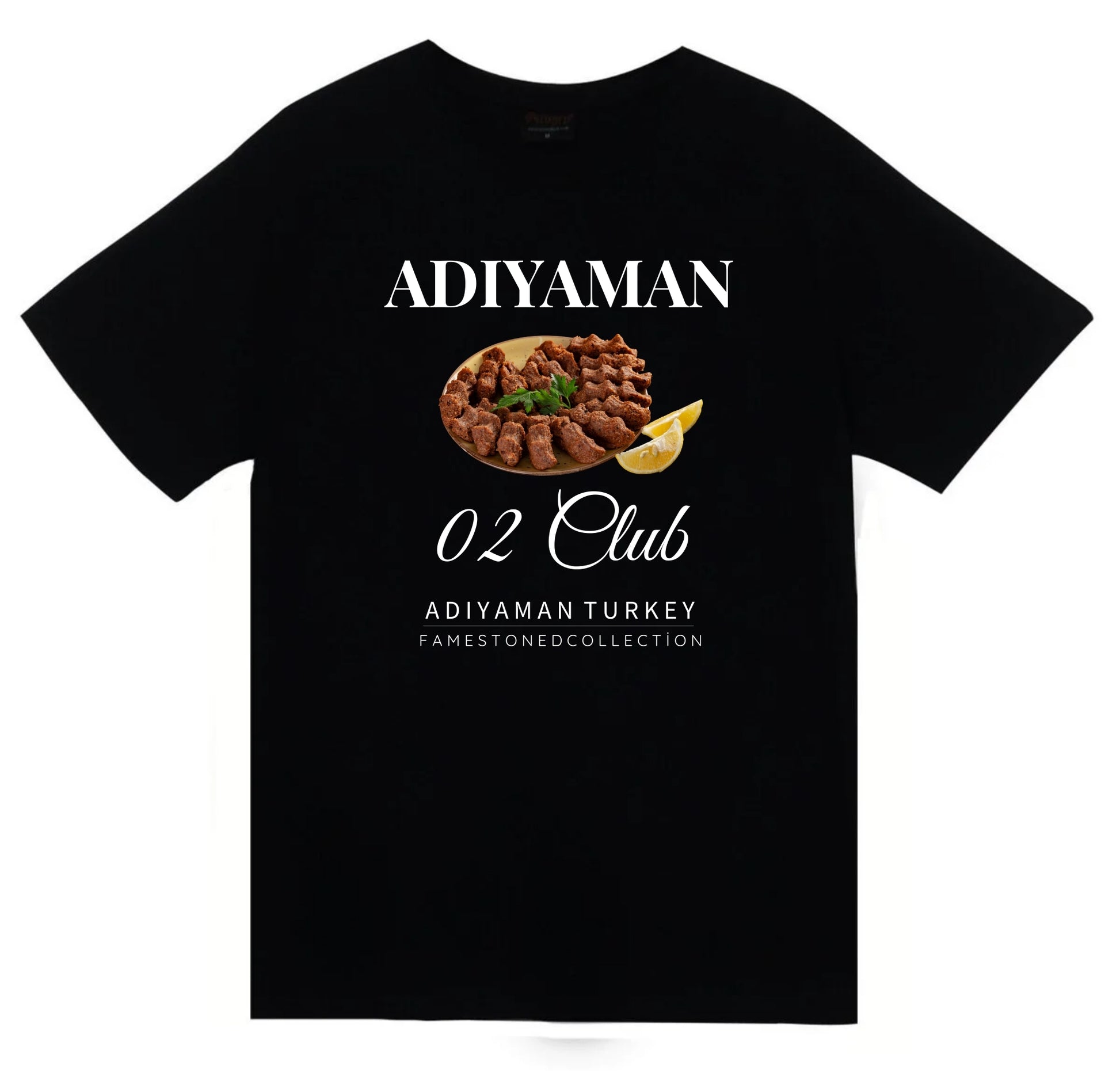 Adıyaman - 02 - Çiğköfte - Şehir Baskılı Unisex %100 Pamuk Siyah T-shirt