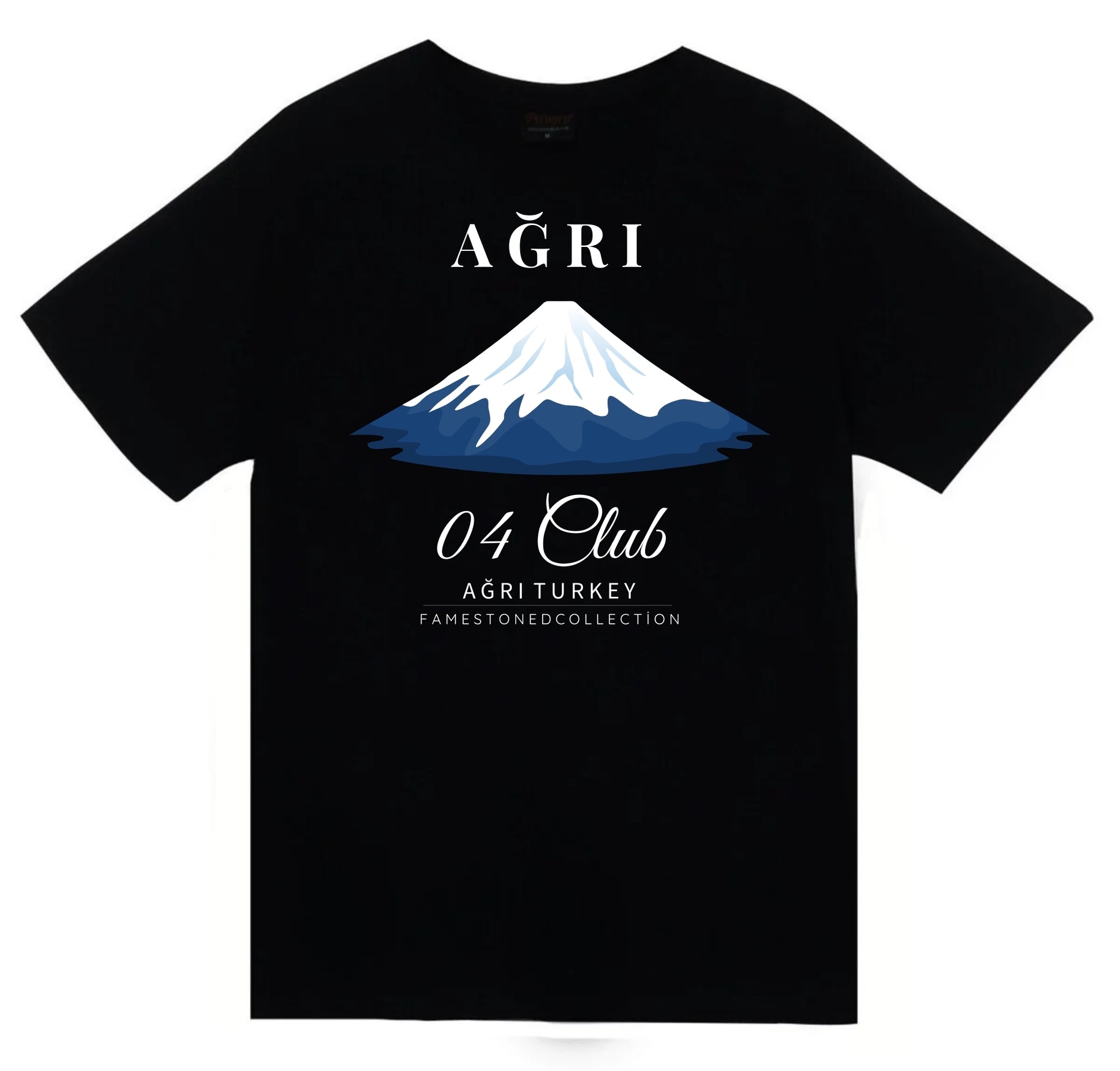 Ağrı - 04 - Dağ - Ağrı Dağı - Şehir Baskılı Unisex %100 Pamuk Siyah T-shirt
