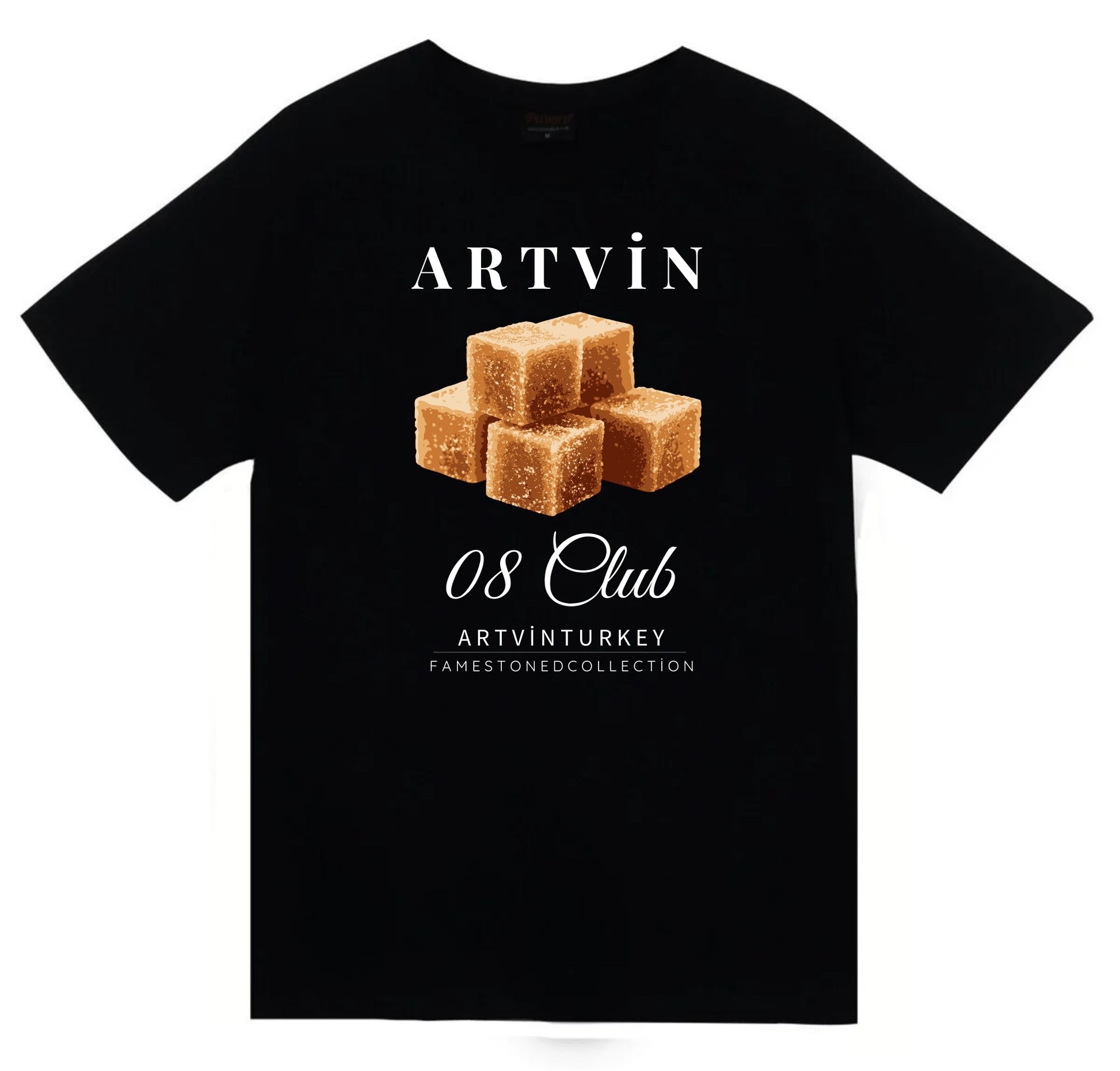 Artvin - 08 - Küp Şekeri - Şehir Baskılı Unisex %100 Pamuk Siyah T-shirt