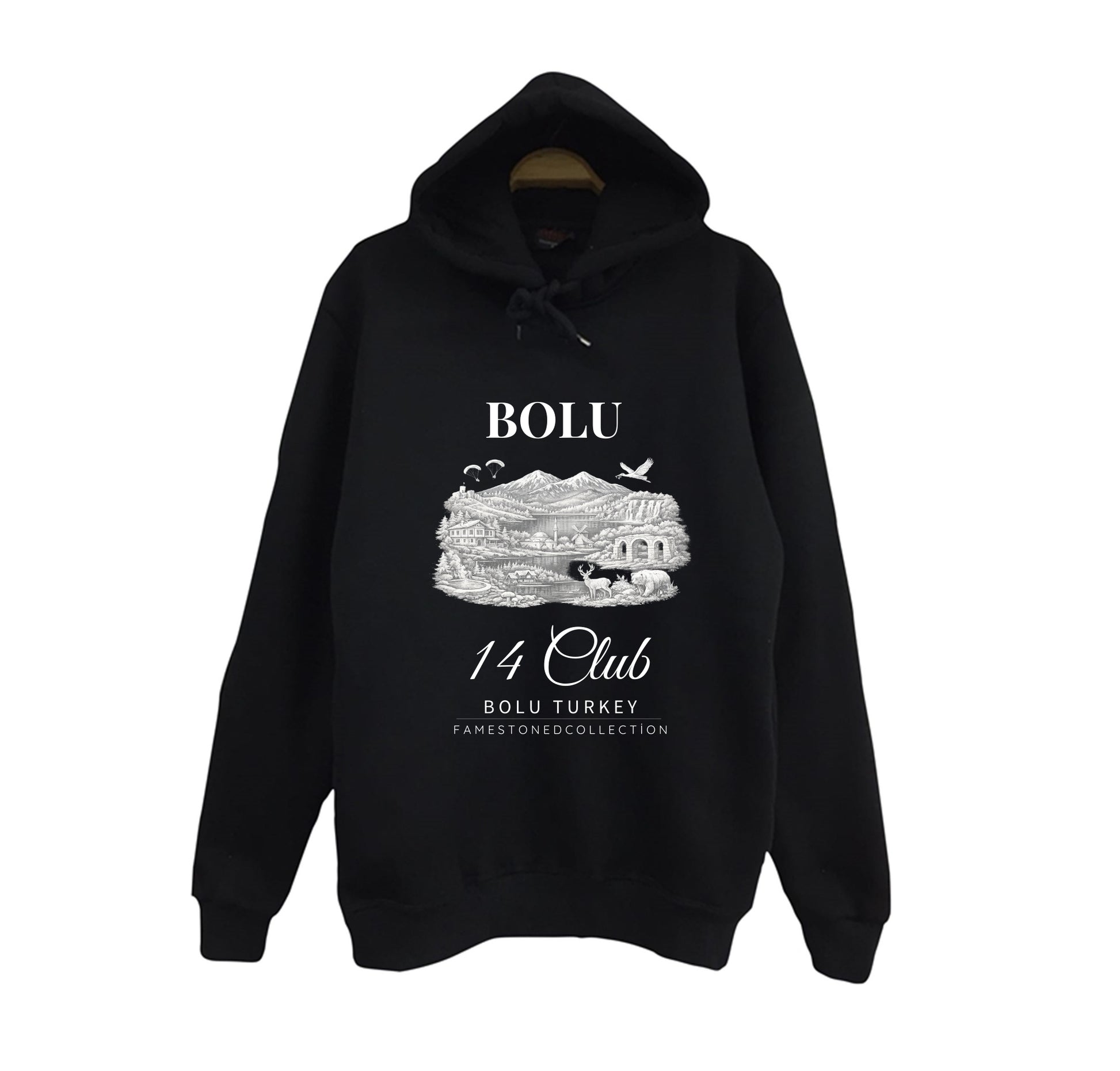 Bolu Abant Yedigöller Gölcük Doğa Şehir Baskılı Unisex %100 Pamuk Kapüşonlu Siyah Sweatshirt
