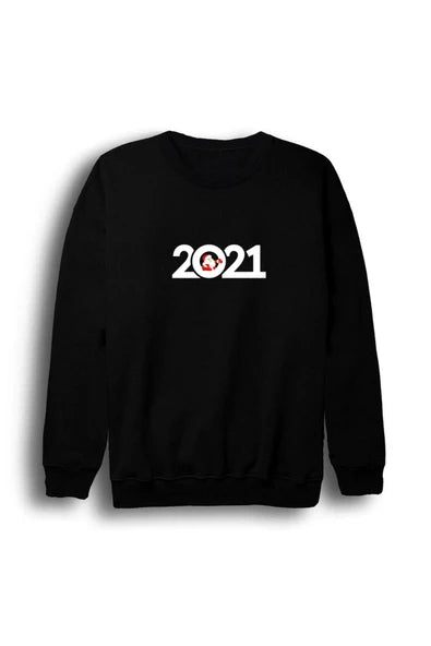fame-stoned Unisex Siyah 2021 Yeni Yıl Baskılı Bisiklet Yaka Sweatshirt
