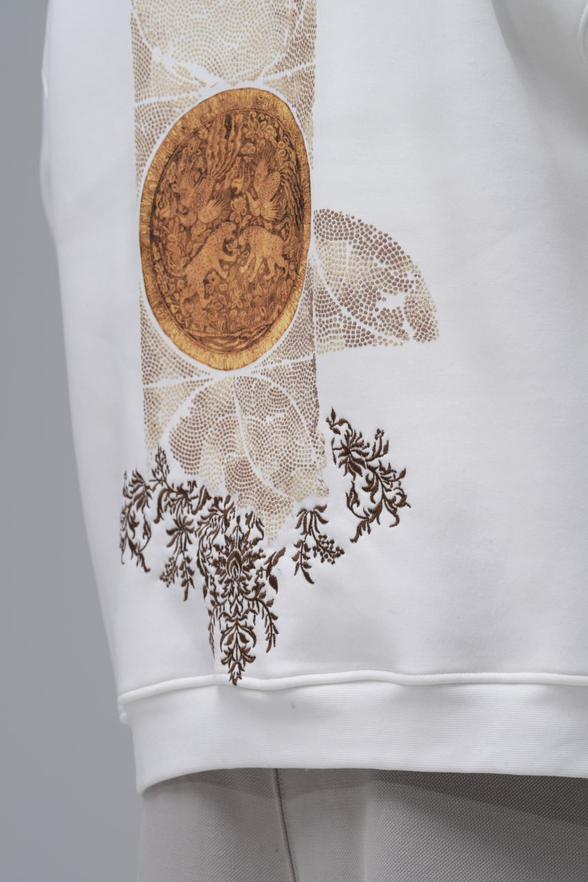 Heritage Baskılı Nakışlı %100 Pamuk Kapüşonlu Unisex Oversize Beyaz Sweatshirt