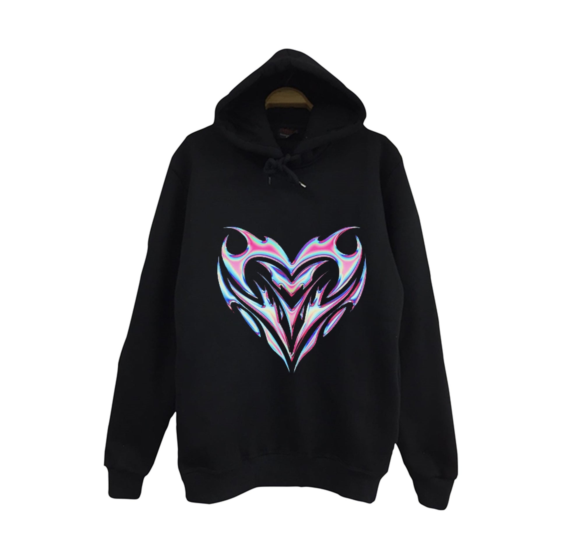 Irisdicent Hearth Baskılı Unisex %100 Pamuk Kapüşonlu Siyah Sweatshirt