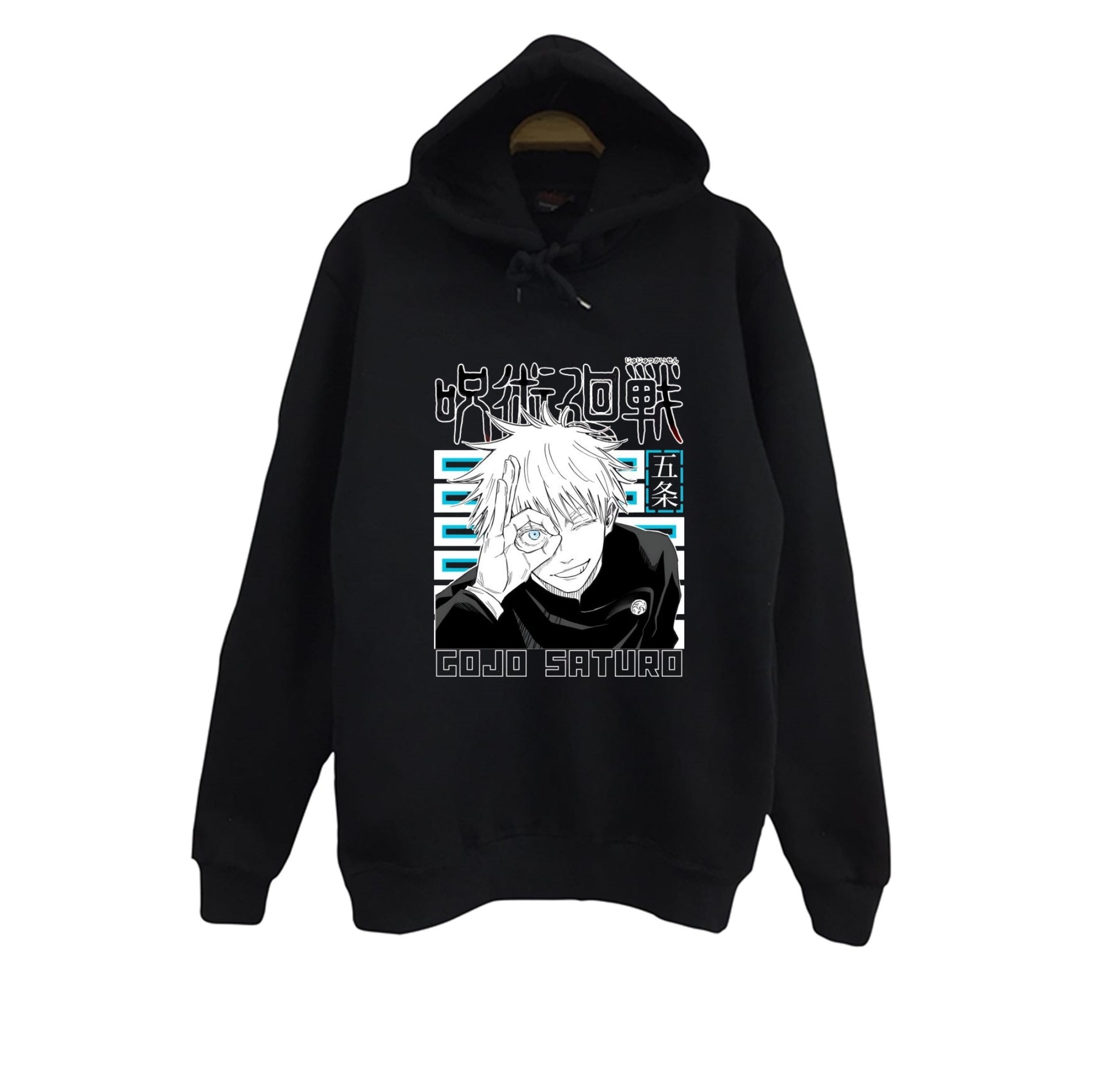 Jujutsu Kaisen Satoru Gojo Anime Baskılı Unisex %100 Pamuk Kapüşonlu Siyah Sweatshirt