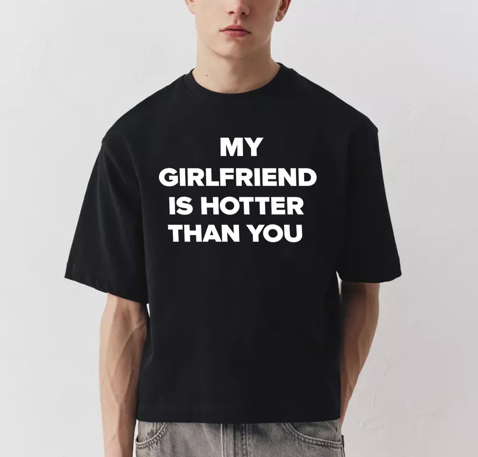 My Girlfriend Is Hotter Than You Baskılı Unisex %100 Pamuk T-shirt