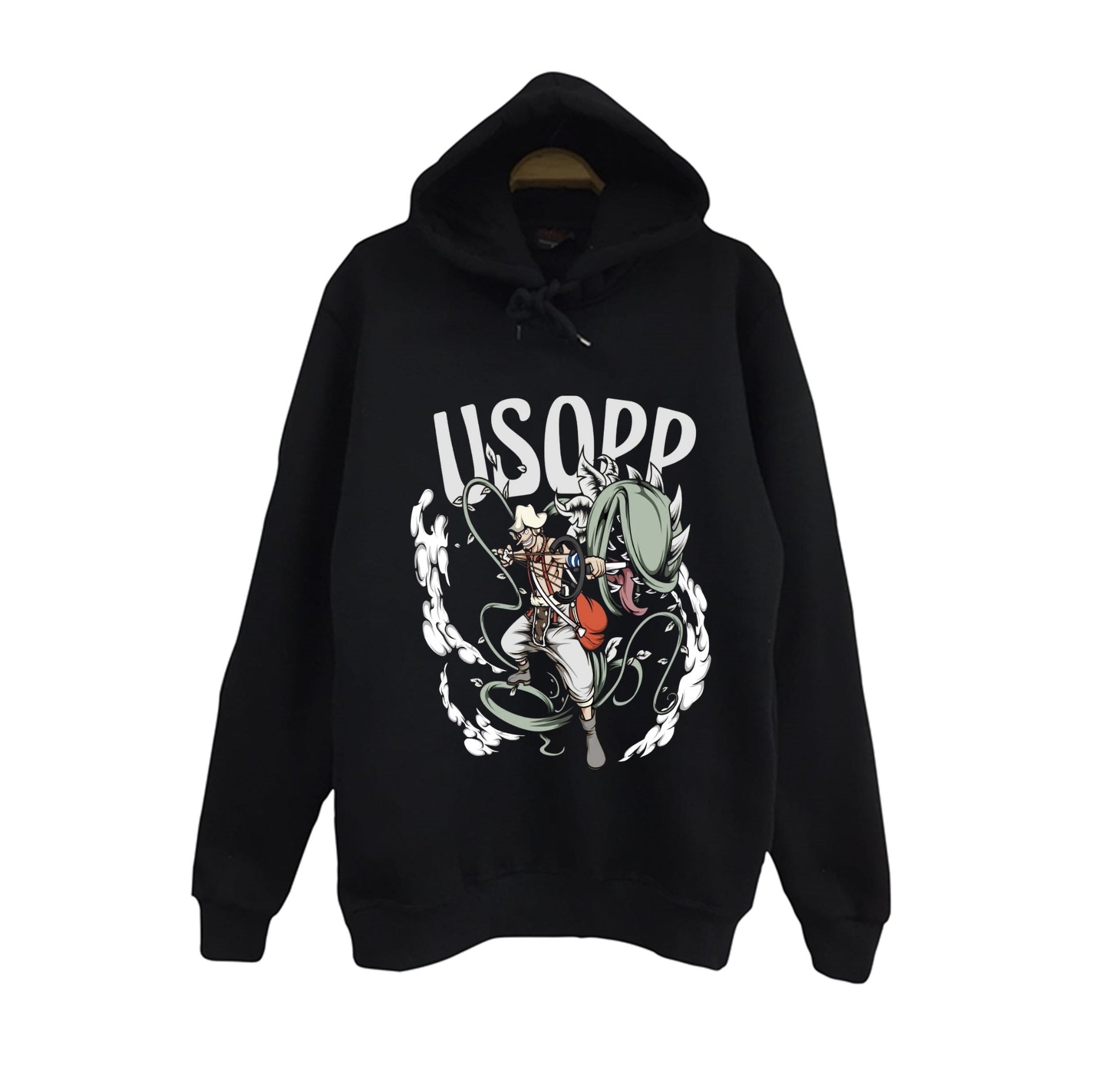 - One Piece serisinin sevilen karakteri Usopp'un anime baskısıyla süslenmiş, şık ve dikkat çekici bir sweatshirt. - %100 pamuklu kumaşı ile gün boyu konfor ve yumuşaklık sunar. - Unisex tasarımı sayesinde hem erkekler hem de kadınlar tarafından rahatlıkla tercih edilebilir. - Siyah rengiyle kolayca kombinlenebilir ve her ortama uyum sağlar. - Kapüşonlu yapısı ile soğuk havalarda ekstra koruma ve stil sunar.