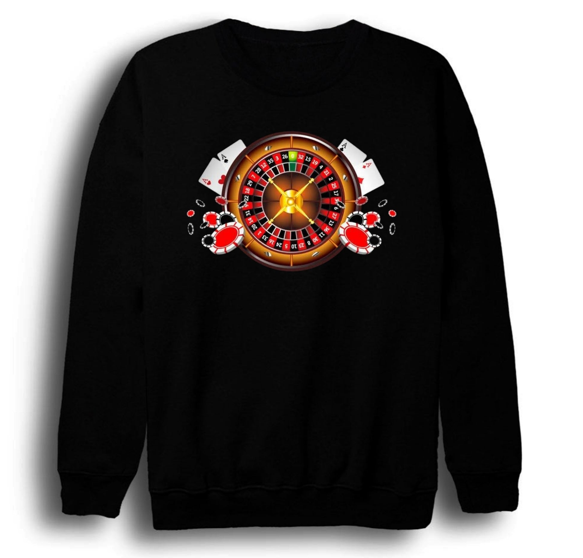 Rulet - Kumar - Kağıt - Oyun - Zar - Casino Baskılı Unisex %100 Pamuk Bisiklet Yaka Siyah Sweatshirt