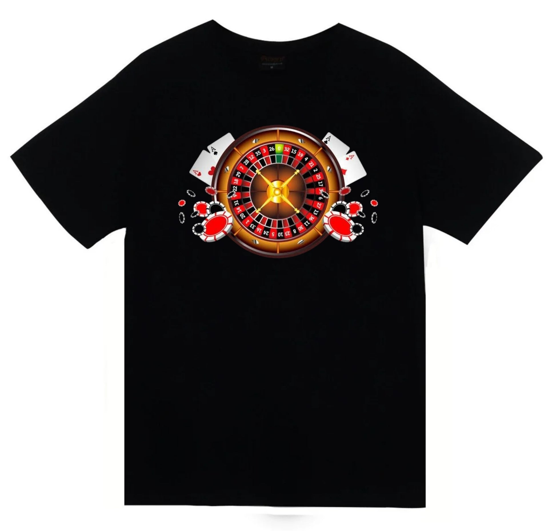 Rulet - Kumar - Kağıt - Oyun - Zar - Casino Baskılı Unisex %100 Pamuk Siyah T-shirt