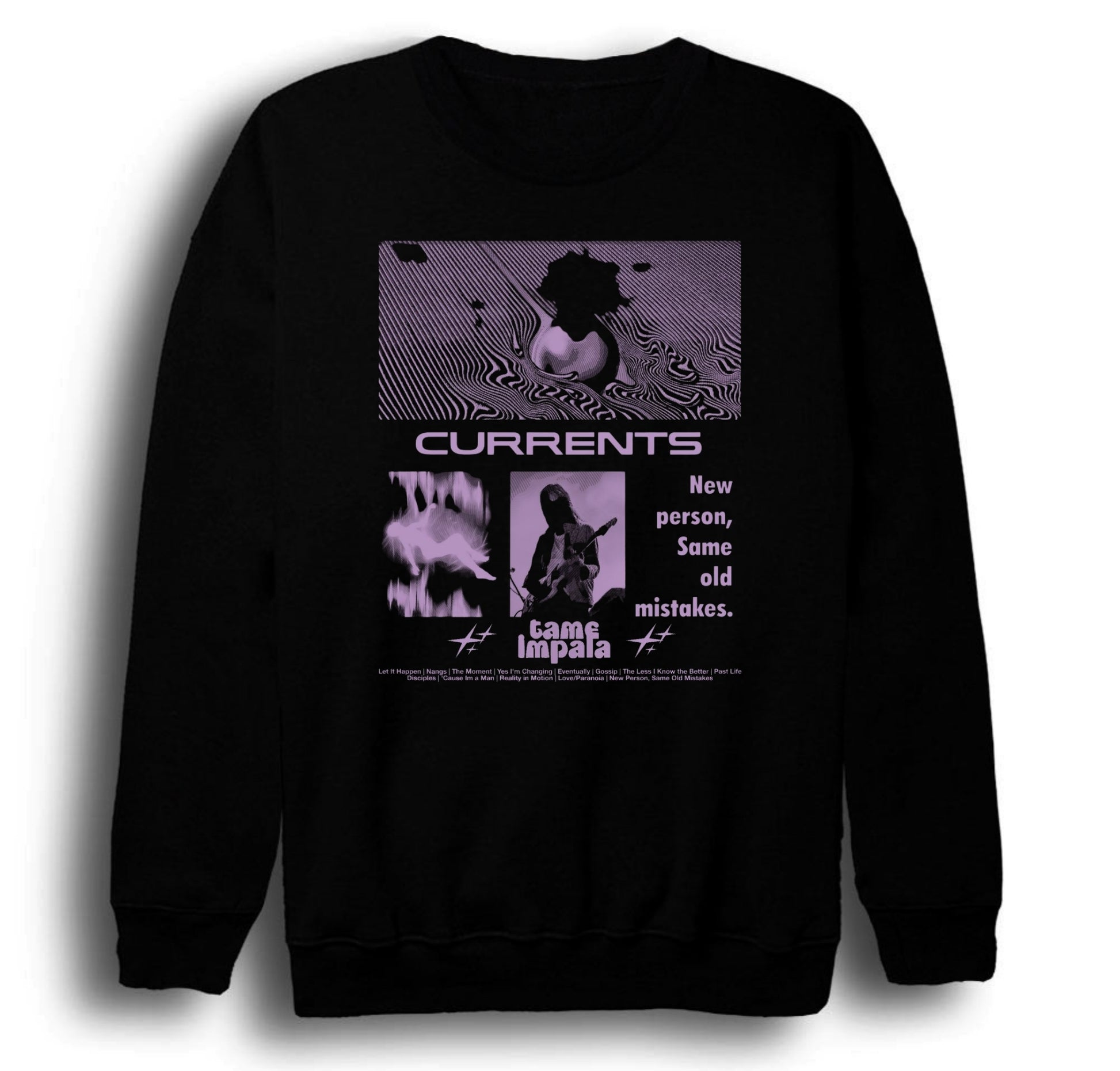 Tame Impala Müzik Grubu - Currents Baskılı Unisex %100 Pamuk Bisiklet Yaka Siyah Sweatshirt