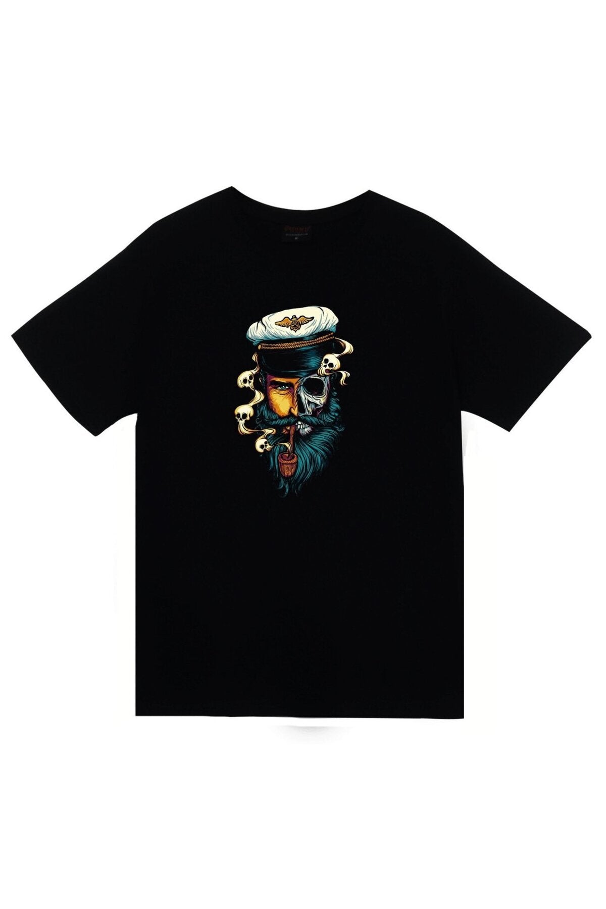 Unisex Siyah Kuru Kafa Korsan Denizci Pipo Tişört
